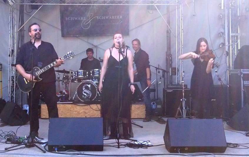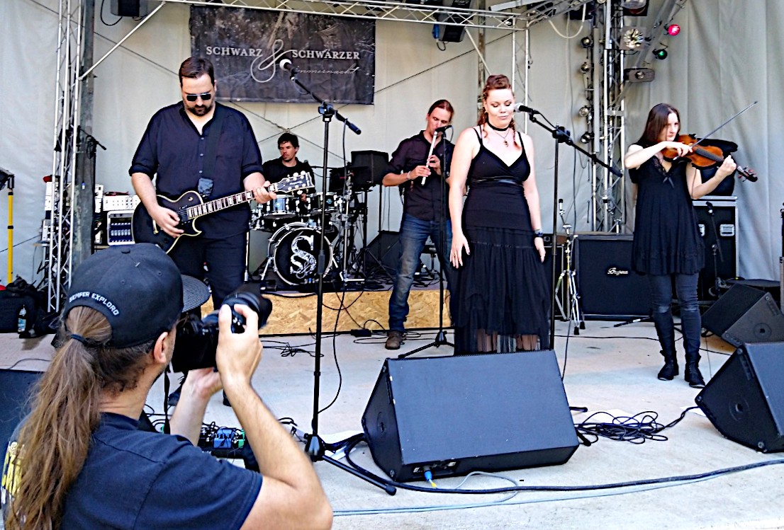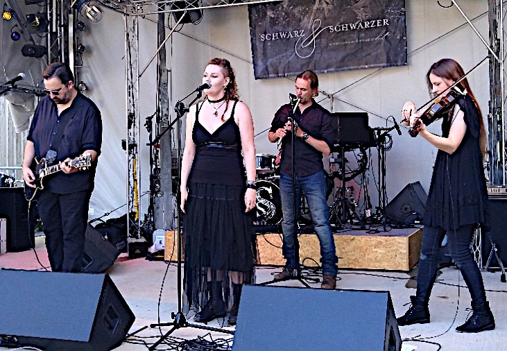Der zweite Festivaltag begann zuerst sehr ruhig. Schwarz & Schwärzer spielten eine sehr interessante Mischung aus Mittelalter, Folk und Shanty. "Cinematic Rock" nennen sie ihren charakteristischen Sound.